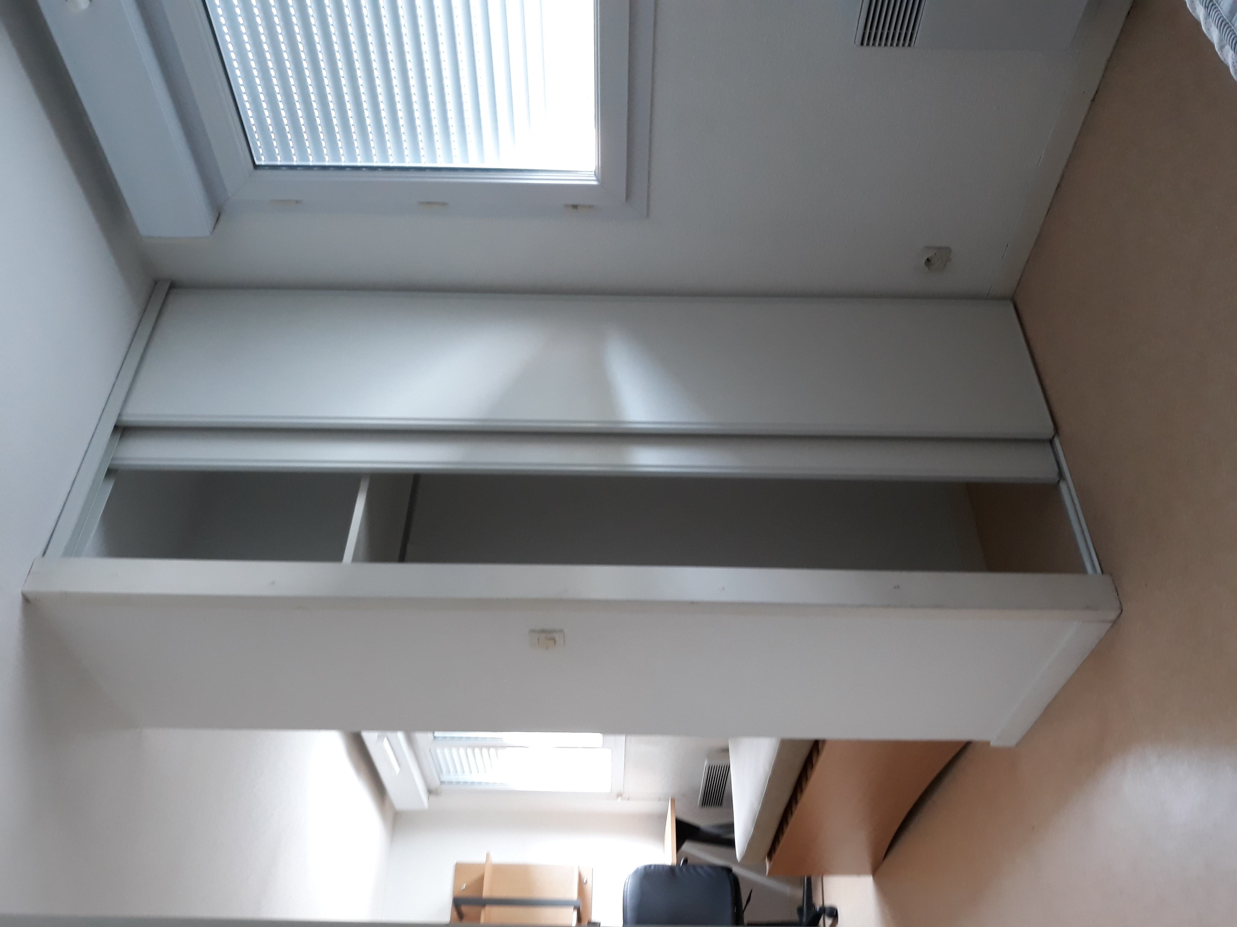 Bureau, étagère murale, 1 chaise de bureau ;