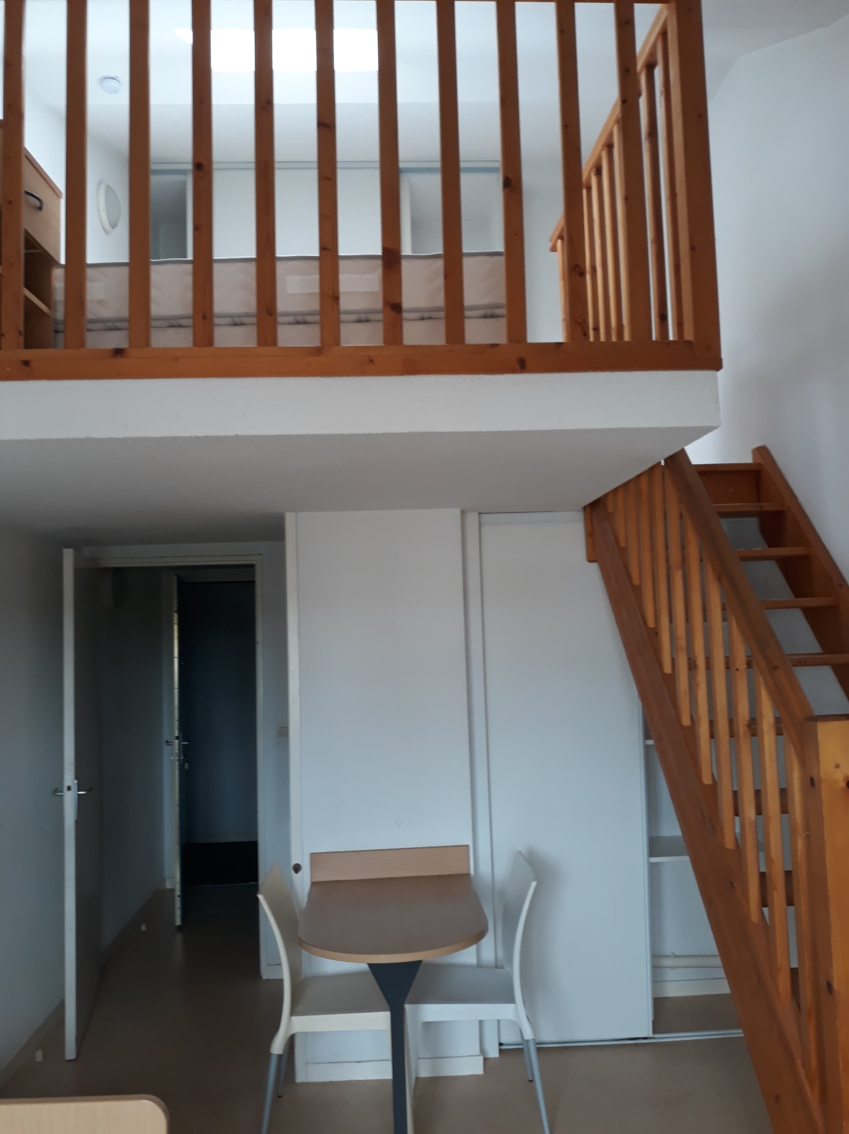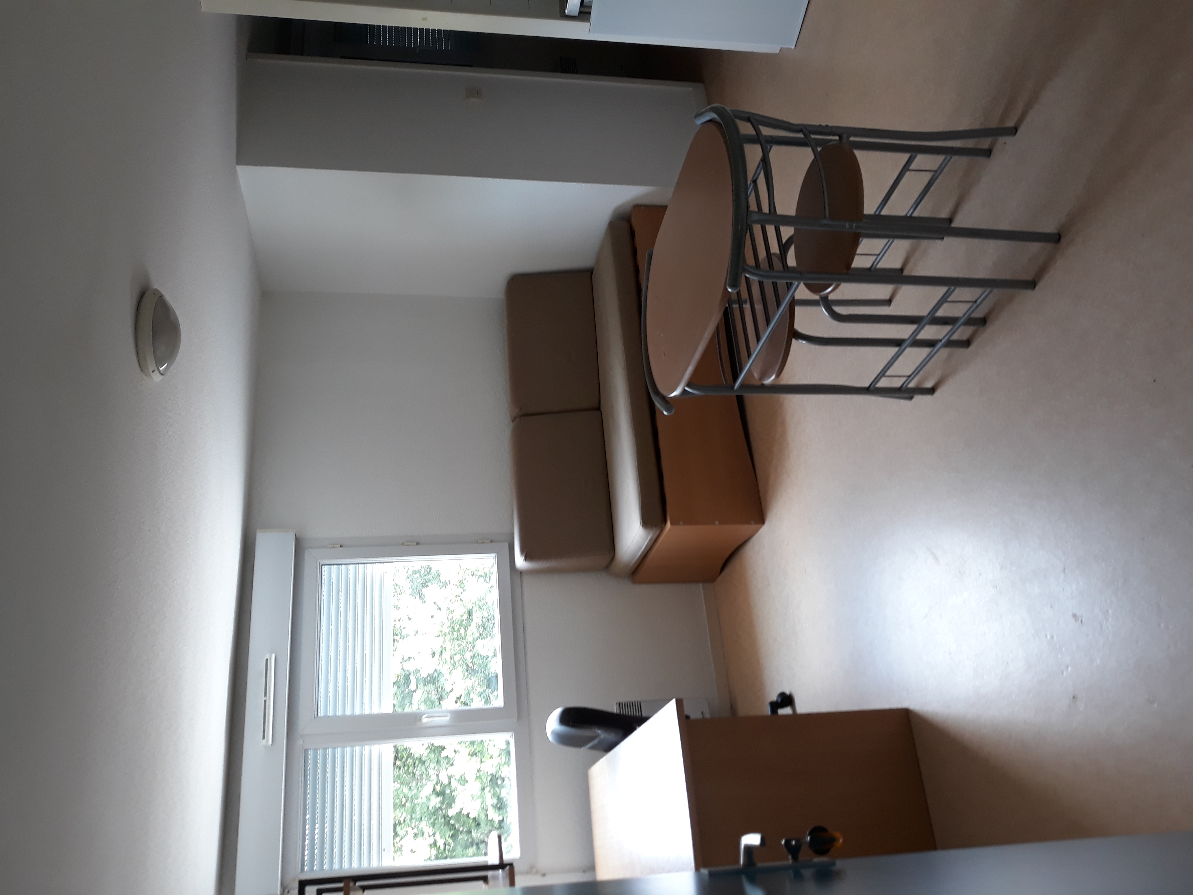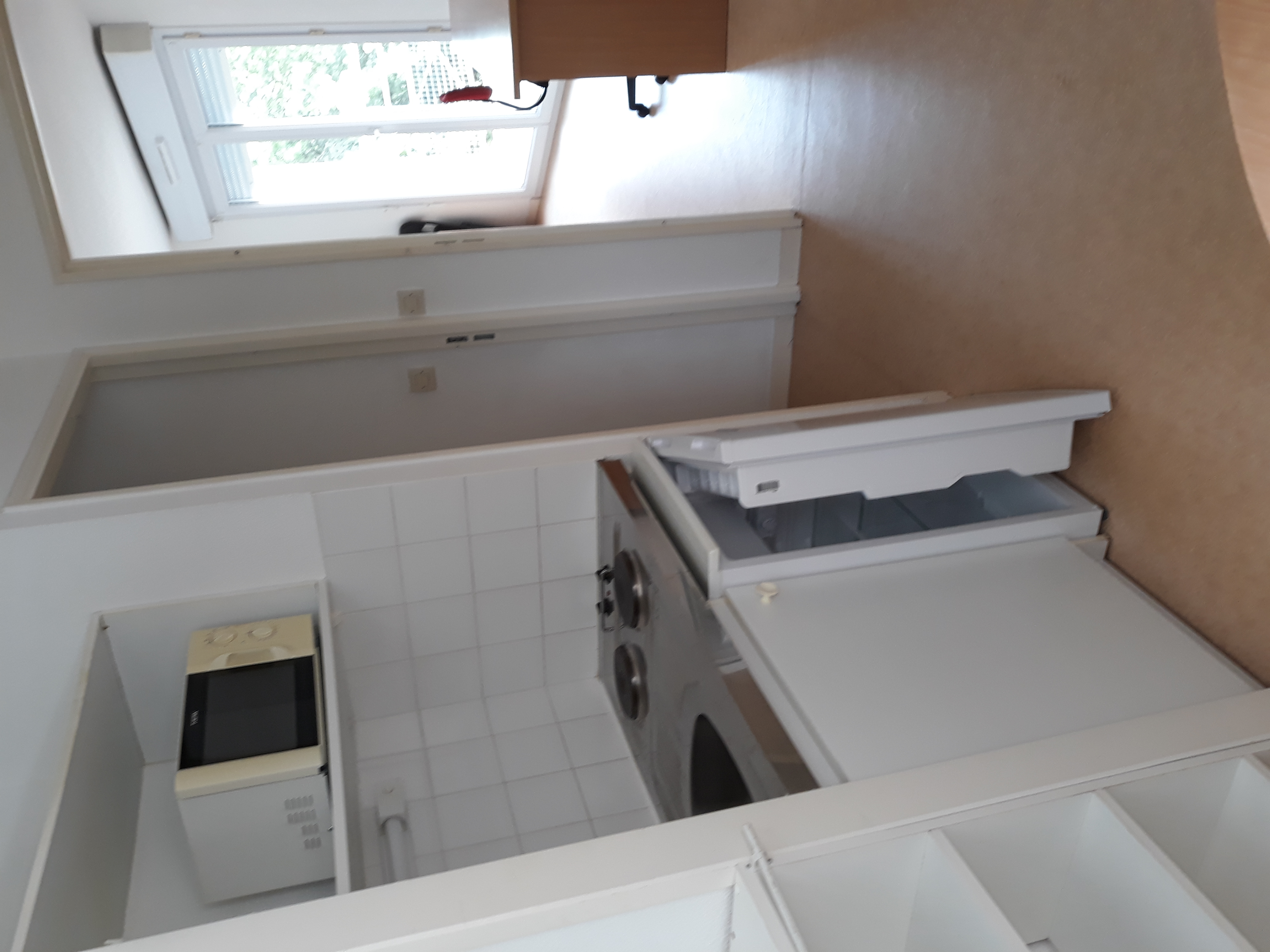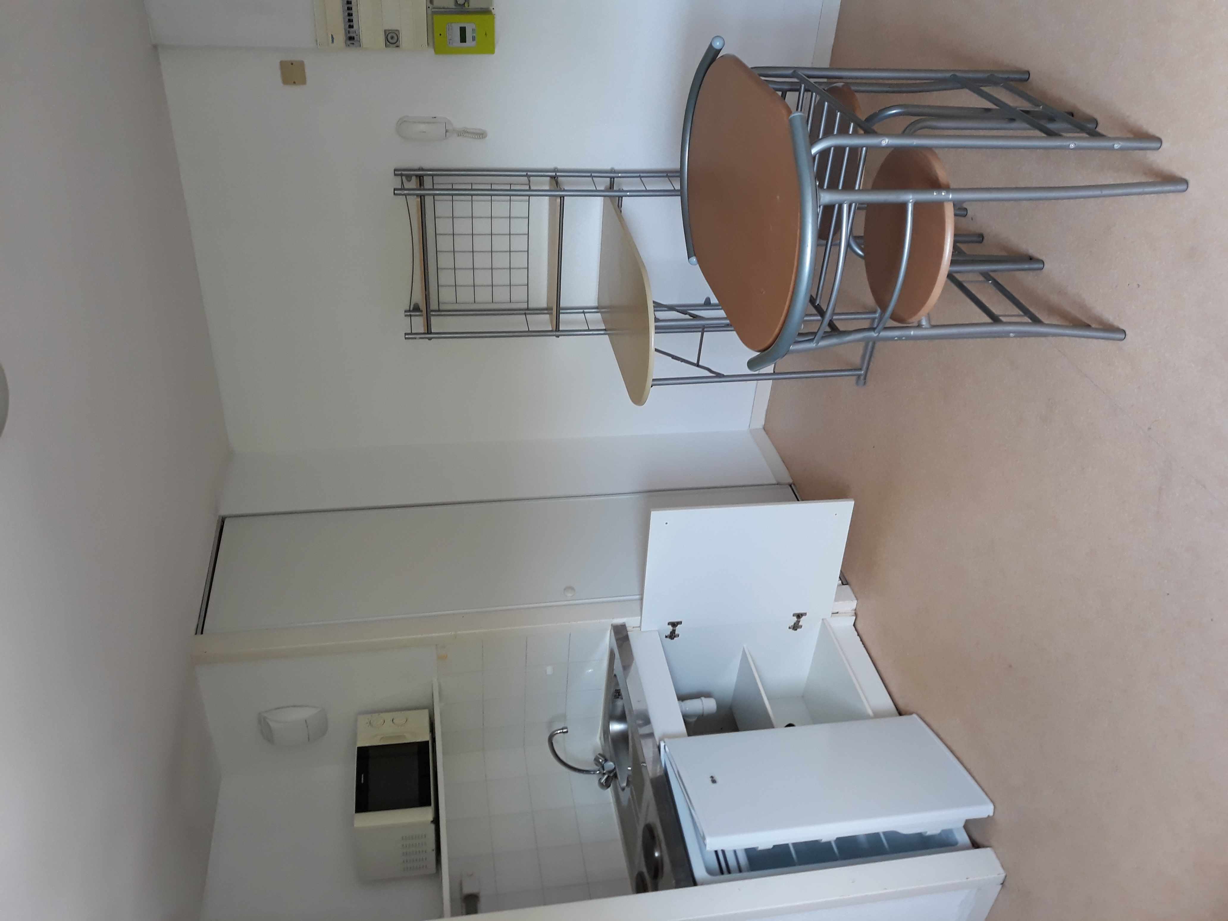 Kitchenette équipée d’un évier, 2 plaques de cuisson, réfrigérateur 120 L avec freezer, un meuble haut et bas ;